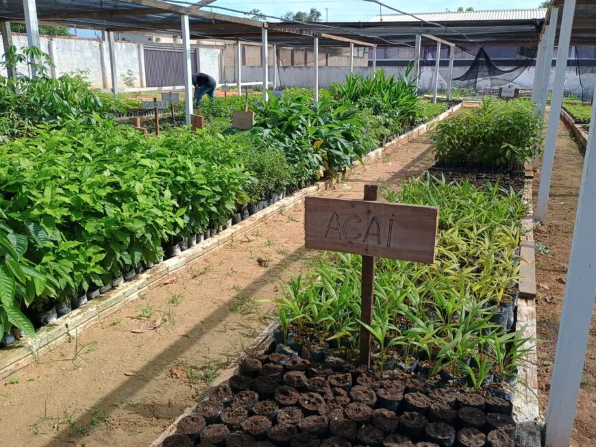 O viveiro comporta mudas de plantas frutíferas e nativas
